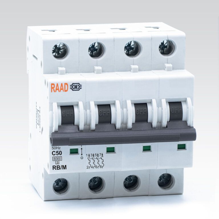 کلید مینیاتوری4 پل با جریان50آمپر و جریان قطع 6 کیلوآمپر ، رنج AC و منحنی قطع C